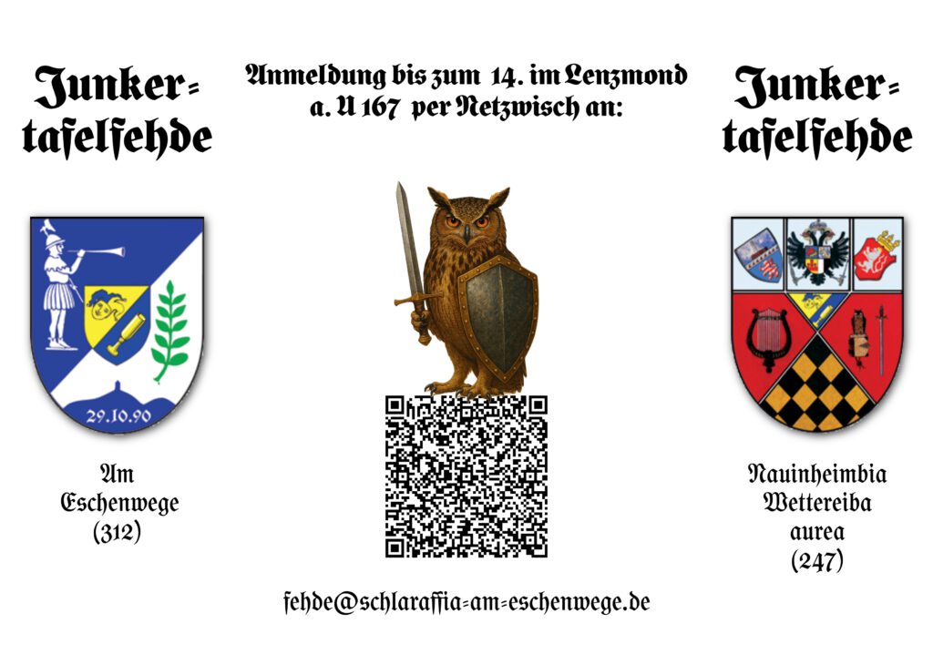 Anmeldung: bis zum 14. im Lenzmond a.U. 167 per Netzwisch an: fehde(at)schlaraffia-am-eschenwege.de